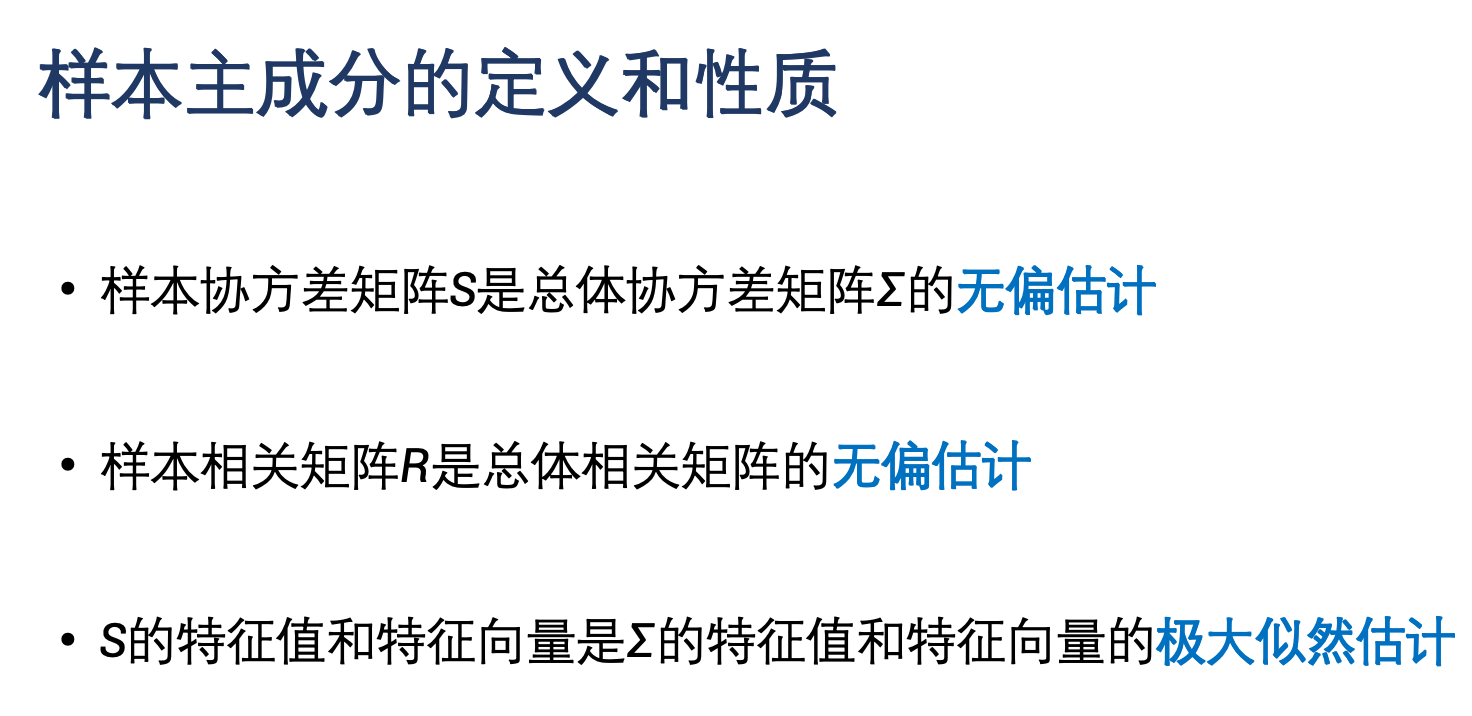 在数据总体/有限样本上进行的主成分分析称为总体/样本主成分分析: