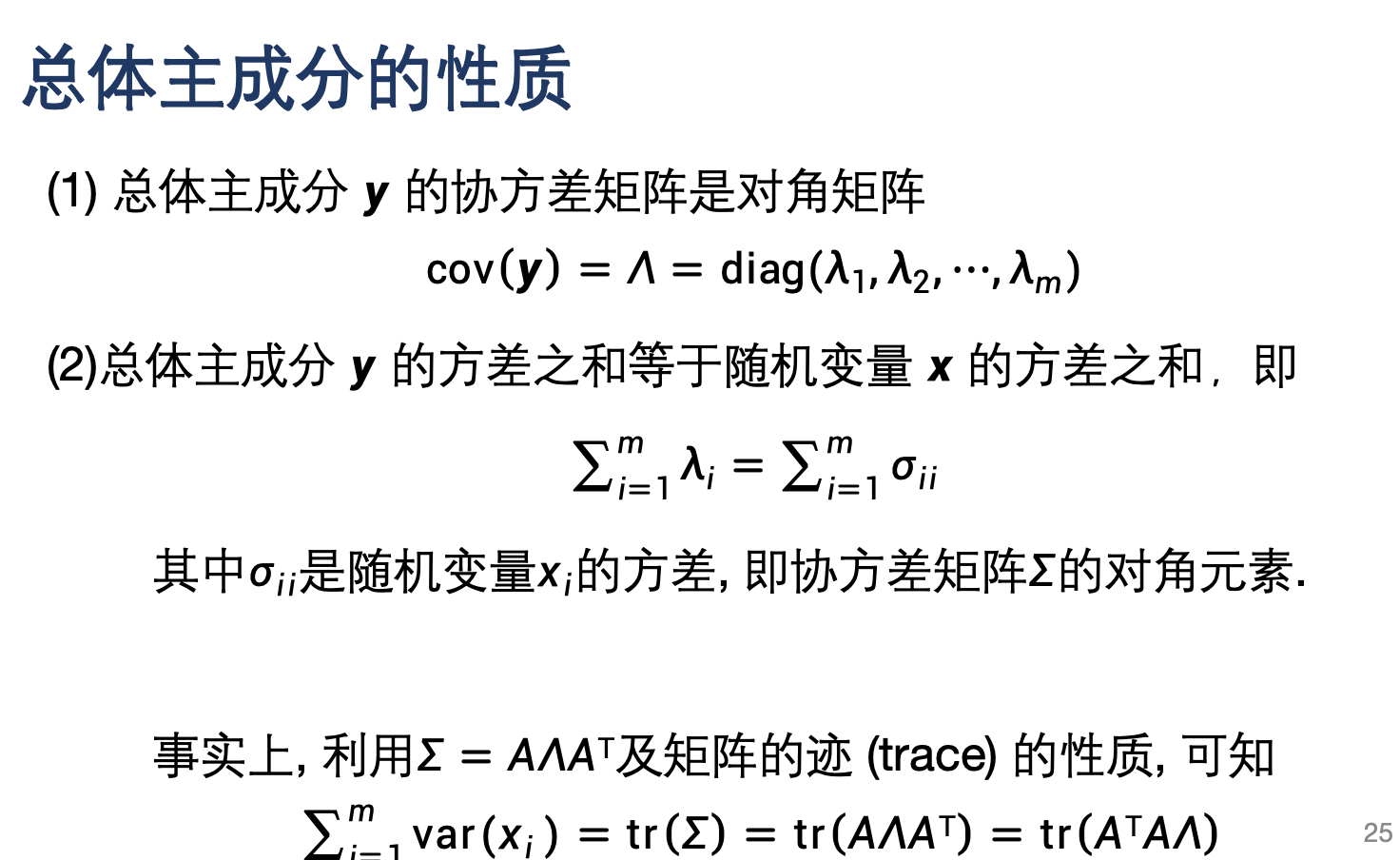 - 利用正交变换把由线性相关变量表示的观测数据转换为少数几个由线性无关变量 (主成分) 表示的数据。
