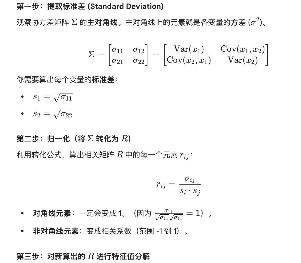 - 排序:将特征值按降序排列 $\lambda_1 \ge \lambda_2 \ge \dots \ge 0$。