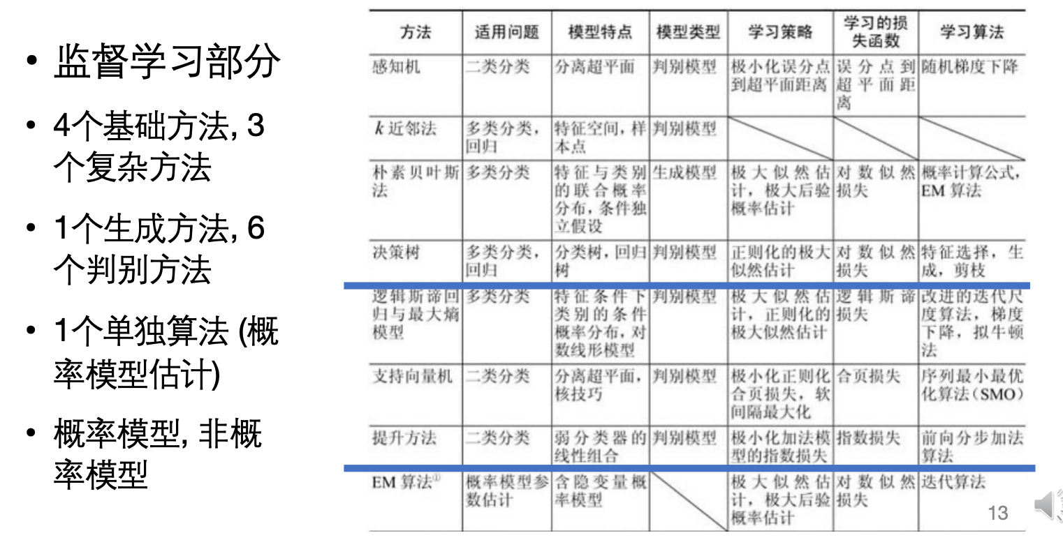 - 模型分类:(非)概率、(非)线性、(非)参数、生成/判别