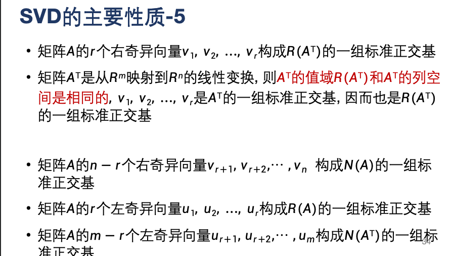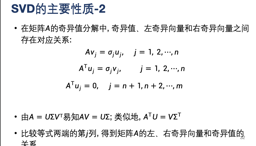 设矩阵 $A \in R^{m \times n}$, $A$ 的奇异值分解为 $U \Sigma V^T$,其中 $\Sigma = \text{diag}(\sigma_1, \sigma_2, \dots, \sigma_n)$,则: