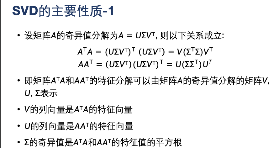 - 计算奇异值:$\sigma_i = \sqrt{\lambda_i}$。